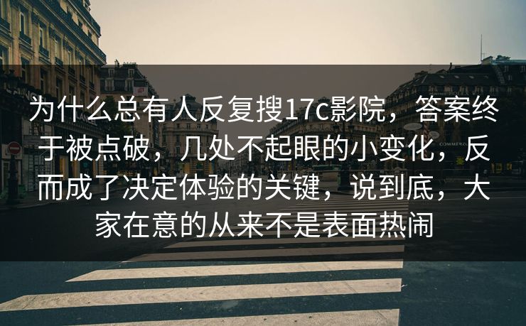 为什么总有人反复搜17c影院,答案终于被点破,几处不起眼的小变化,反而成了决定体验的关键,说到底,大家在意的从来不是表面热闹