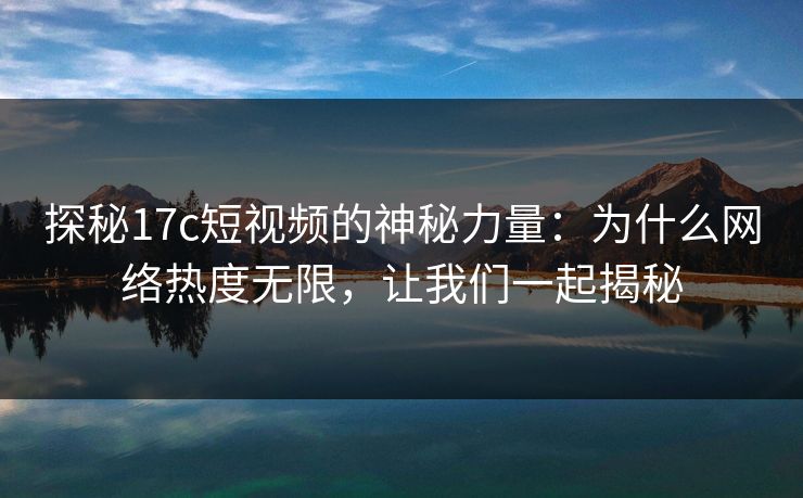 探秘17c短视频的神秘力量:为什么网络热度无限,让我们一起揭秘